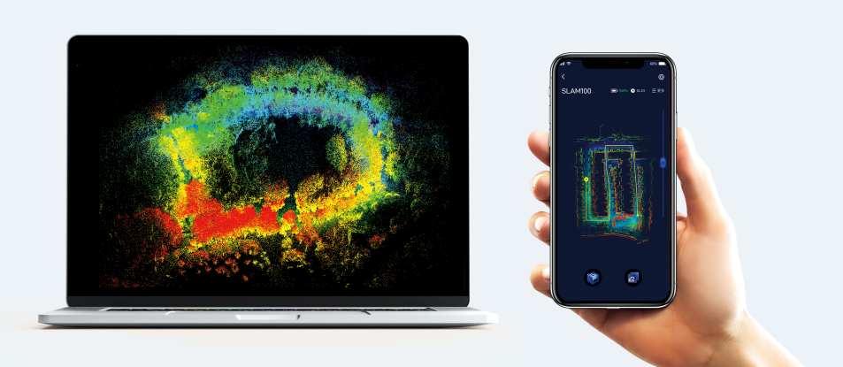 SLAM100是一款便携手持移动式激光雷达扫描仪。该系统具有360°旋转云台,可形成270°×360°点云覆盖,结合行业级SLAM算法,可在无光照、无GPS情况下获取周围环境高精度、高精细度的三维点云数据。