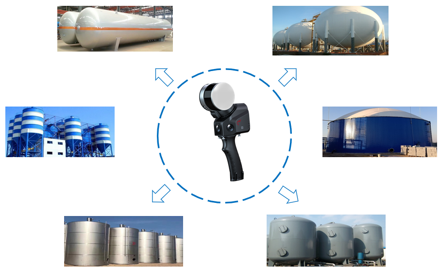 SLAM100在大型罐体容积测量中具有高效、准确的优势,突破了常规测量方式获取单一点位的束缚和不足,避免了站式扫描仪频繁换站和数据拼接问题,可实现罐体快速数字化三维扫描,点云成果精度高、结构完整,通过点云封装能够实现罐体1:1复刻,精确计算罐体容积。