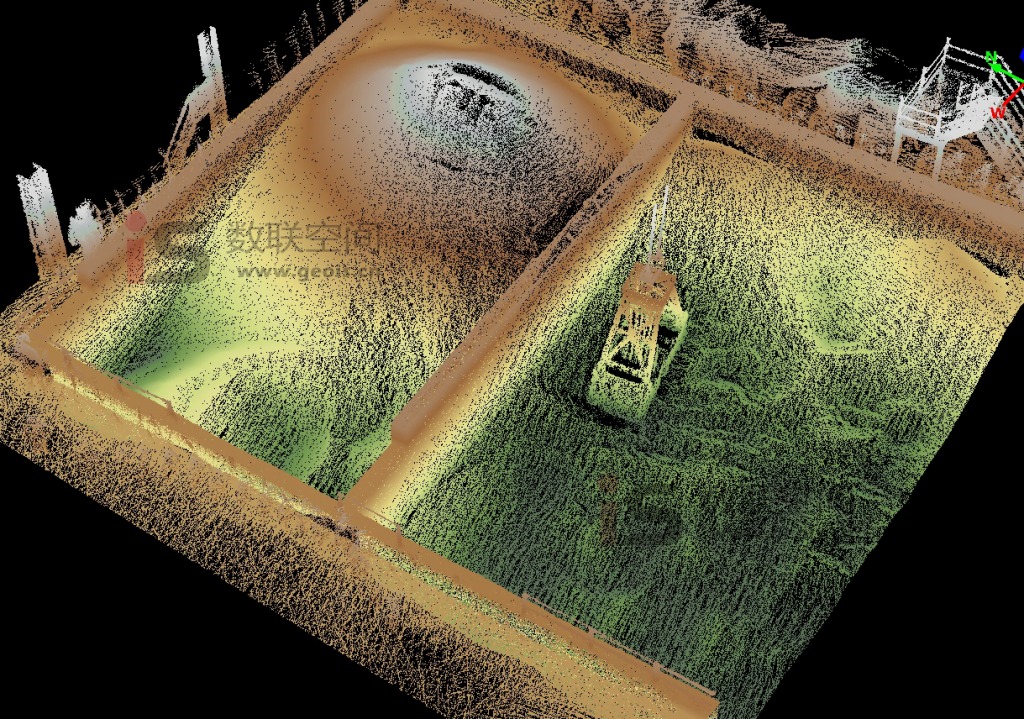 目标堆体具有不规则性、腐蚀性、不接触等性质,采用手持三维激光扫描仪,可以不接触、远距离、高精度的对目标堆体进行三维扫描,获取其高精度的三维信息,精确复原现有堆料的体积及体积变化情况。